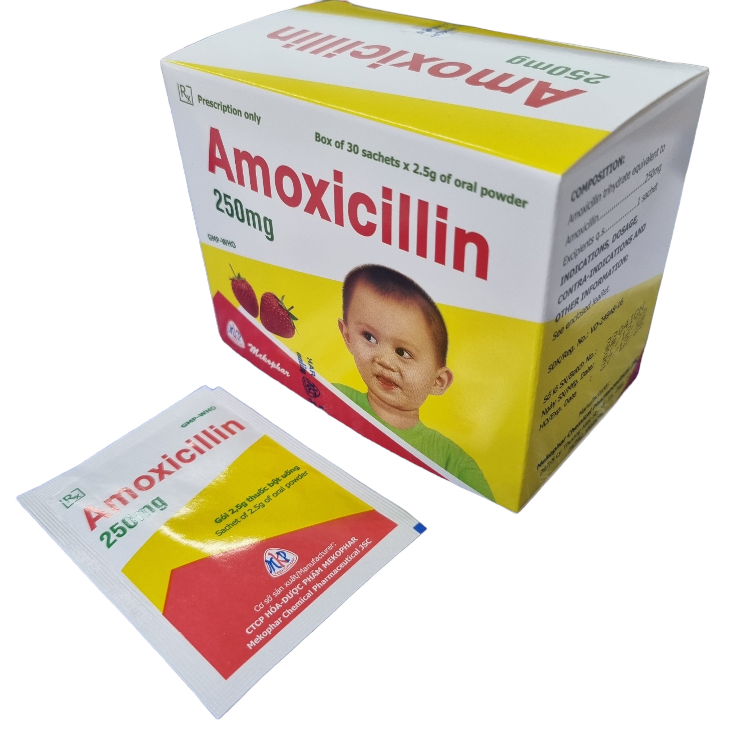 Amoxilin 250 Hộp 30 gói x 2.5gr Mekophar
