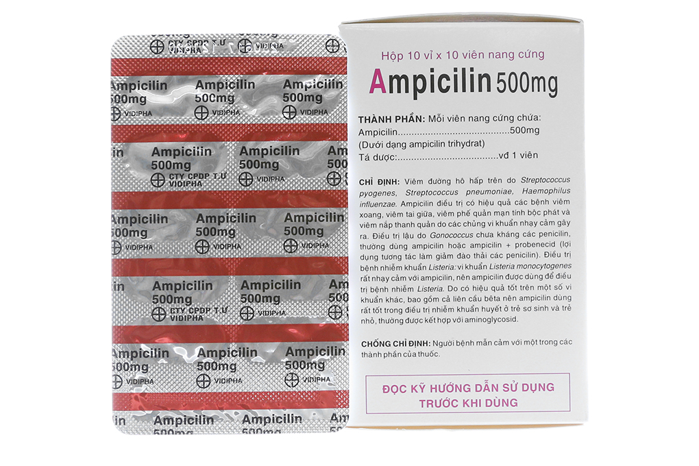 Hoạt chất: Ampicilin 500mg (Dưới dạng ampicilin trihydrat).