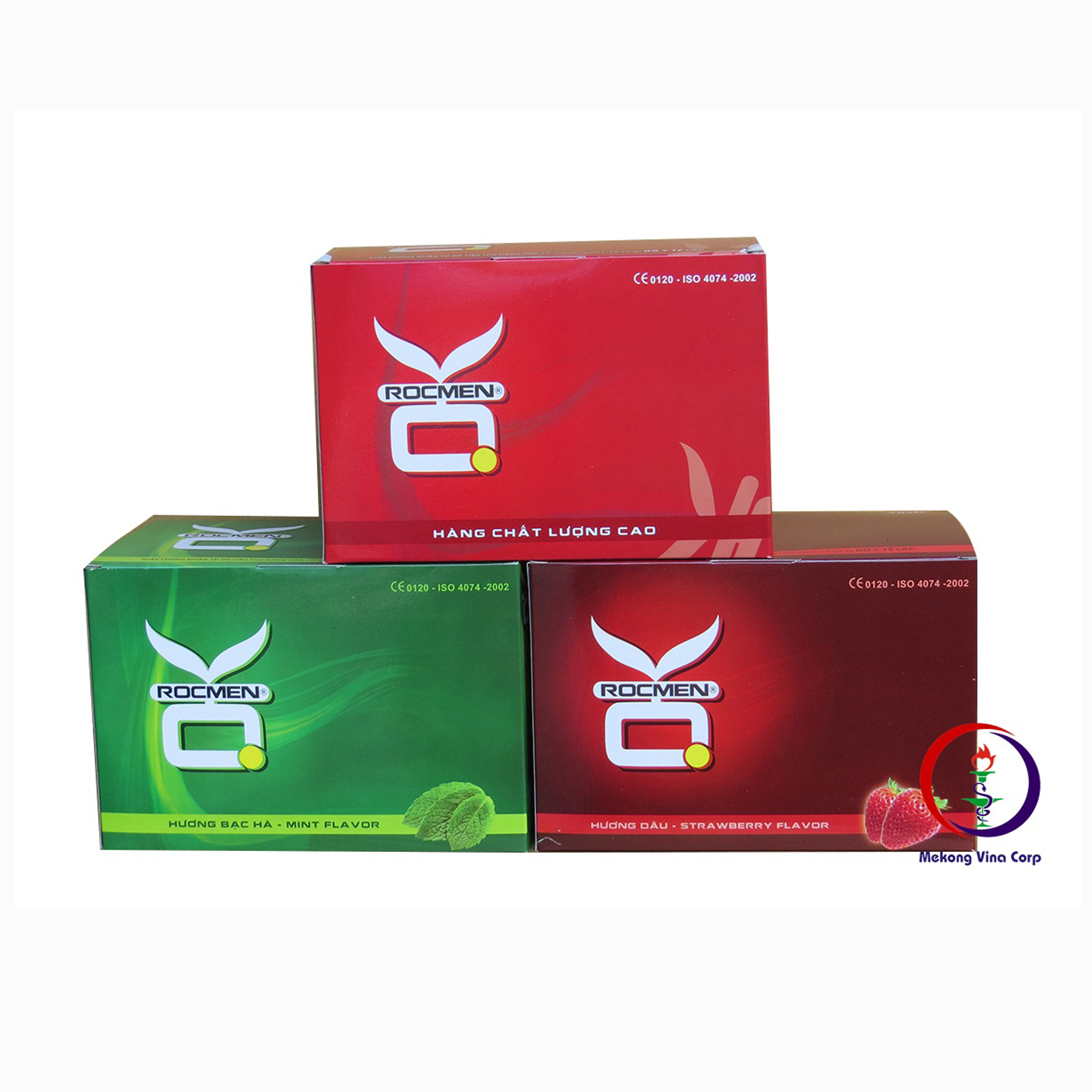 Có 3 loại phong phú: Bạc hà quyến rũ, Dâu tươi mát, Đỏ không mùi Thành phần: Mủ cao su thiên nhiên, hương liệu Kích thước: R 50mm, C 180mm, M 0.03 mm Sản xuất bởi: Medevies 3s Quy cách: Hộp nhỏ 3 cái, 48 hộp nhỏ/hộp lớn Sản phẩm đạt: CE 0120, ISO 4074-2002