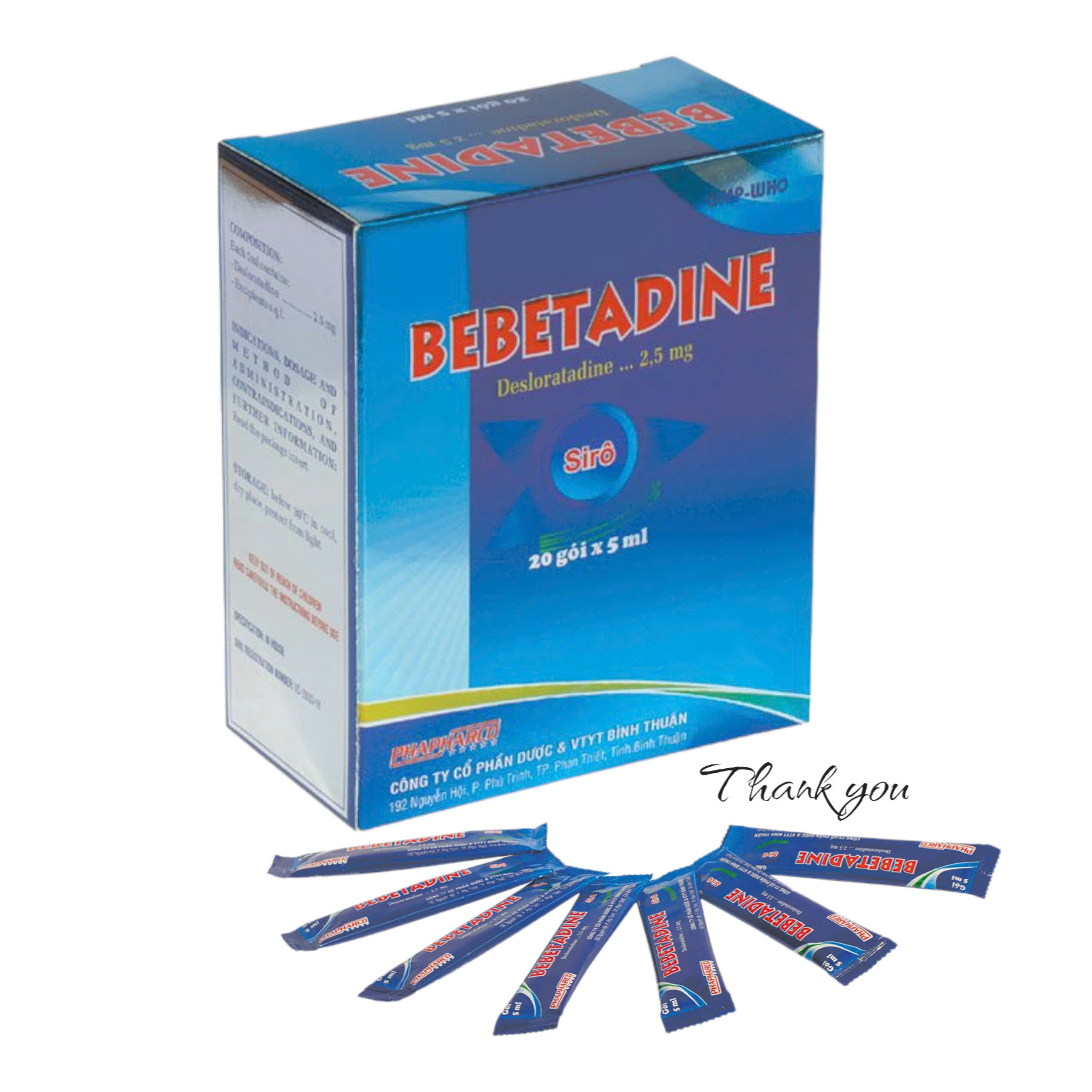Quy cách đóng gói: Hộp 20 gói x 5ml