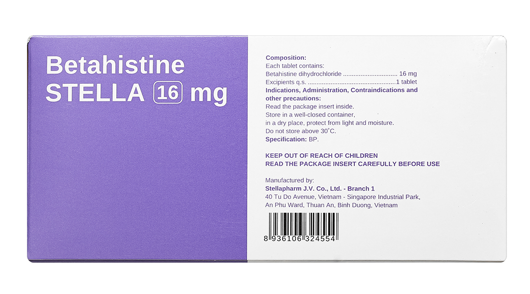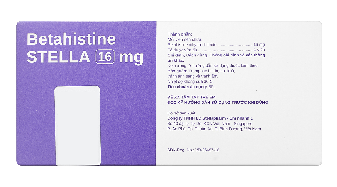 Thành phần hoạt chất: Betahistine dihydrochloride 16 mg.