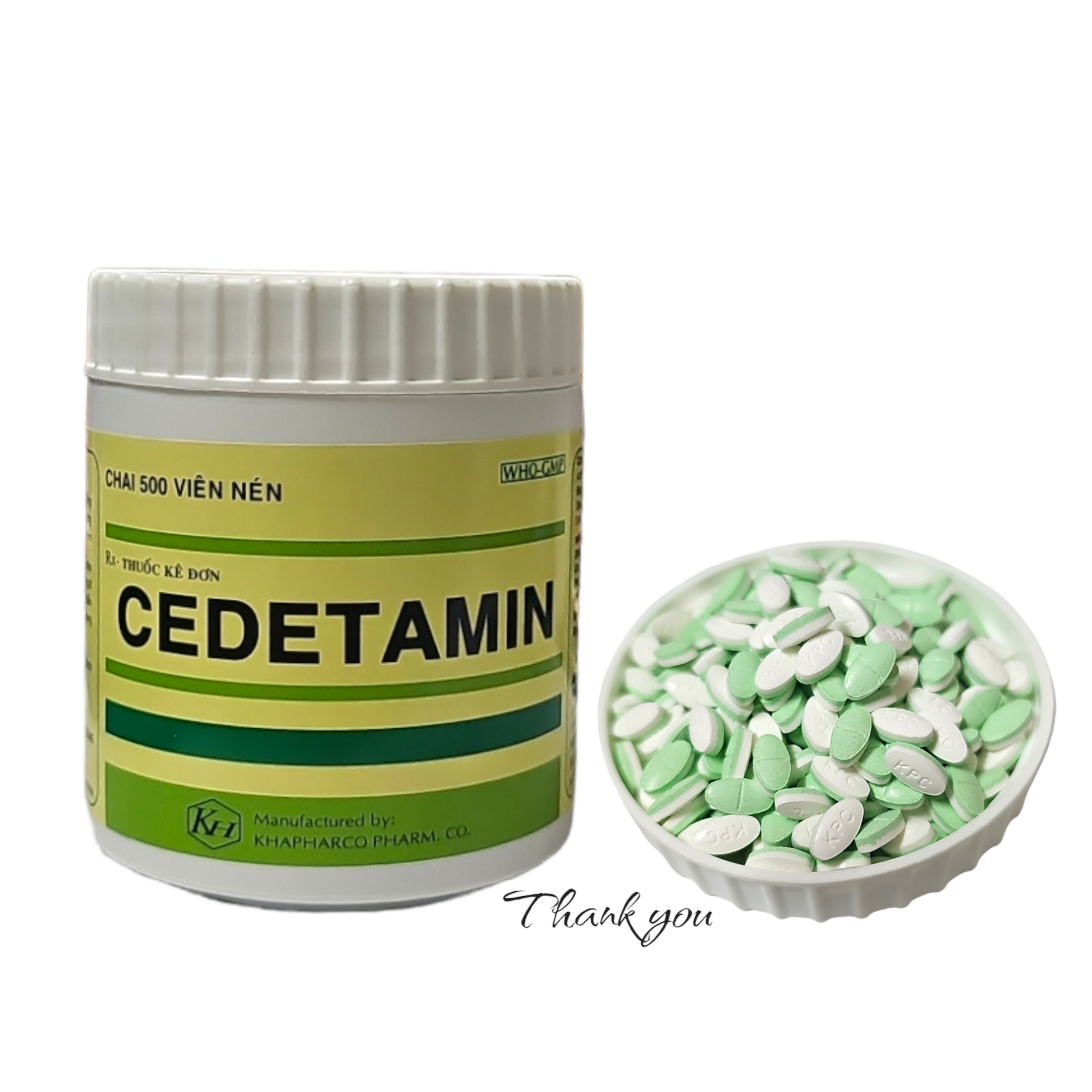RxTHUỐC KÊ ĐƠNCEDETAMIN CHAI 500 VIÊN NÉNBetamethasone… 0,25mgDexchlorpheniramine maleate… 2mgThành phần công thức:Betamethason……0,25mgDexclorpheniramin maleate…….. ..2mg Thành phần tá dược…….vừa đủ……1 viên nénChỉ định – Cách dùng – Liều dùng Chống chỉ định – Thận trọng – Tác dụng không mong muốn – Và các thông tin khácXin đọc trong tờ hướng dẫn sử dụngBảo quản: Dưới 30°C, nơi khô ráo, tránh ánh sáng.ĐỂ XA TẦM TAY TRẺ EM ĐỌC KỸ HƯỚNG DẪN SỬ DỤNG TRƯỚC KHI DÙNGSản xuất tại:CÔNG TY CP DƯỢC PHẨM KHÁNH HÒA Đường 2-4, P. Vĩnh Hòa, T.P Nha Trang, T. Khánh HòaTiêu chuẩn: TCCS – SĐK/Reg.No : VD-26866 – 17NSX/Mfg Date1:13/02/22Số lô SX/Batch No.: 4700122HSD/Exp Date: 13/02/25