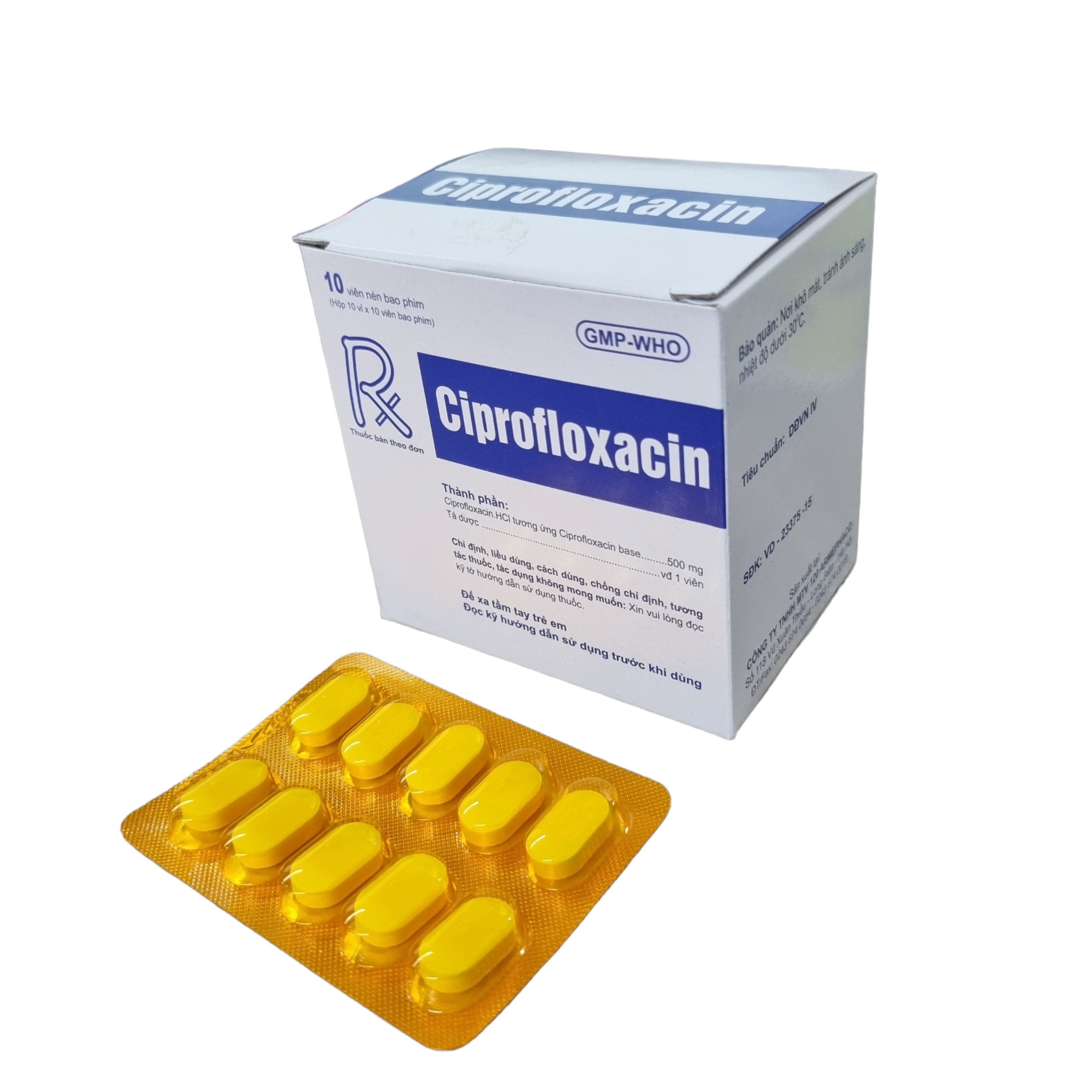 Ciprofloxacin Hộp 100 viên nén bao phim- Dược 120