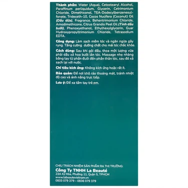 Dầu xả Hoa Bưởi La Beauty 300ml làm sạch mềm tóc và ngăn ngừa gãy rụng. Đồng thời, tăng cường dưỡng chất cho mái tóc chắc khỏe.