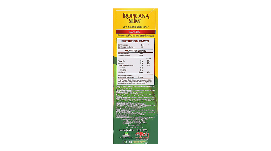 ĐƯỜNG ĂN KIÊNG TROPICANA SLIM CLASSIC HỘP 100G (50 GÓI X 2G)