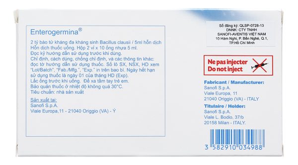 - Có thể nhìn thấy – các hạt nhỏ trong ống thuốc Enterogermina do sự tập hợp của các bào tử Bacillus clausii, điều đó chỉ ra rằng thuốc không bị thay đổi chất lượng. Không có chống chỉ định sử dụng Enterogermina trên bệnh nhân bị tiêu chảy mỡ.