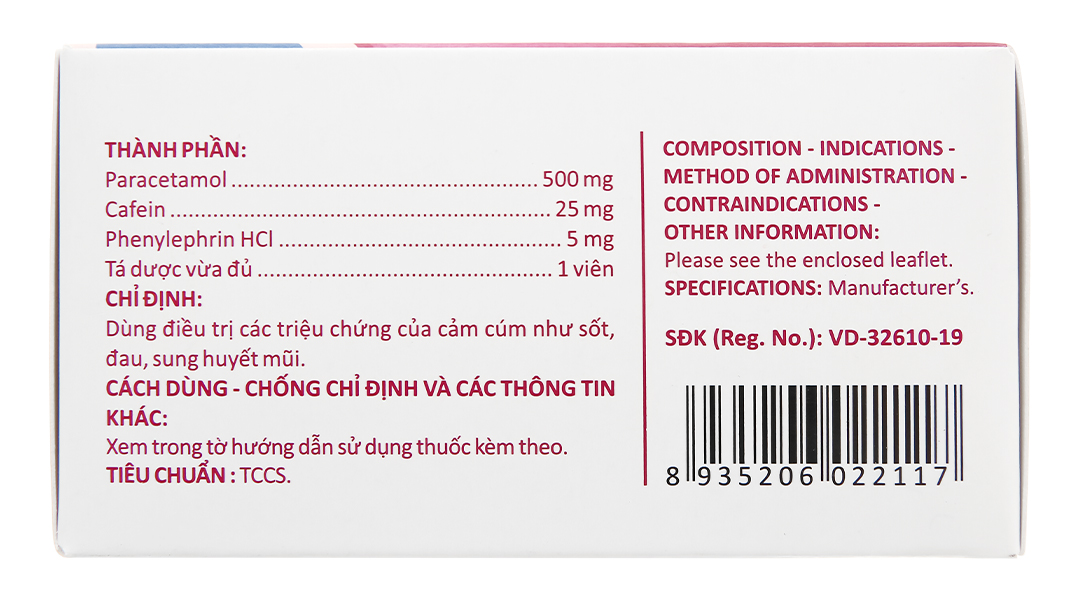 dùng điều trị các triệu chứng của cảm cúm như sốt, đau, sung huyết mũi, mệt mỏi.