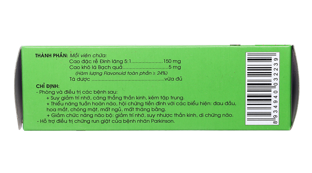 Phòng và trị suy giảm trí nhớ, thiểu năng tuần hoàn não, giảm chức năng não bộ.