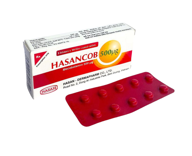 Thành phần Mecobalamin ( Vitamin B12) ……. 500mcg Mô tả: Công dụng Phòng và điều trị thiếu hụt vitamin B12 do nhiều nguyênnhân; Phòng và điều trị bệnh thiếu máu hồng cầu khổng lồ đi kèmthiếu hụt vitamin B12 sau cắt dạ dày hoặc do mắc phải hội chứng kém hấp thu; Phòng và điều trị thiếu máu ác tính và các thiếu máu hồng cầuto khác; Phòng và điều trị bệnh lý thần kinh ngoại biên: Chóng mặt, ùtai. Chống chỉ định Bệnh nhân có tiền sử quá mẫn với Mecobalamin hay thành phầnkhác của thuốc; Người có u ác tính (do thành phần vitamin B12 làm tăng trưởngcác mô có tốc độ sinh trưởng cao nên có nguy cơ làm khối u tiến triển). Cách dùng và liều dùng Cách dùng: Đường uống. Thờiđiểm uống thuốc Hasancob không phụ thuộc vào bữa ăn. Nếu người bệnh bị buồn nônthì nên ăn no trước khi dùng thuốc Hasancob. Liều dùng: Theo chỉ định của bác sĩ Có thể tham khảoliều dùng sau Người lớnlà 1 viên/lần x 3 lần/ngày Liều dùng có thể được điều chỉnh tùy theo tuổi tác của ngườibệnh và mức độ trầm trọng của triệu chứng. ThuốcHasancob không khuyến cáo sử dụng cho trẻ em. Quá liều: Hiện chưa có báocáo về trường hợp sử dụng quá liều thuốc Hasancob. Nên tích cực theo dõi ngườibệnh nếu dùng thuốc quá liều để có biện pháp xử trí kịp thời. Trong trường hợpkhẩn cấp, nên gọi ngay cho trung tâm cấp cứu hoặc đưa bệnh nhân với bệnh viện gầnnhất. Quên liều: Nếu người bệnhquên dùng 1 liều thuốc Hasancob thì nên uống thuốc ngay khi nhớ ra. Nếu thời điểmnhớ ra gần với liều dùng kế tiếp thì bạn hãy bỏ qua liều đã quên và uống liềutiếp theo như thường lệ. Tác dụng phụ Toàn thân: Phản ứng phản vệ, hoa mắt, đau đầu, sốt, co thắtphế quản, phù mạch miệng – hầu (hiếm gặp); Tim: Loạn nhịp tim thứ phát do hạ kali huyết khi bắt đầudùng thuốc (hiếm gặp); Da: Phản ứng dạng trứng cá, ban đỏ, ngứa da, mày đay (hiếm gặp); Tiêu hóa: Buồn nôn (hiếm gặp). Thông thường, các tác dụng phụ của thuốc Hasancob đều nhẹ, tựhết, trừ phản ứng phản vệ. Khi gặp phản ứng phản vệ, người bệnh cần được điềutrị cấp cứu bằng tiêm adrenalin, hô hấp nhân tạo và thở oxy. Thận trọng khi sử dụng Không dùng thuốc Hasancob khi chưa có chẩn đoán xác định vềtình trạng bệnh. Nên theo dõi nồng độ Mecobalamin trong huyết tương và chỉ số tếbào máu ngoại vi với tần suất 3 – 6 tháng/lần để đánh giá hiệu quả điều trị; Không nên dùng thuốc Hasancob trong thời gian điều trị quálâu nếu không thấy hiệu quả. Nên dùng thuốc đúng theo chỉ định của bác sĩ,không được dùng bừa bãi, vì có thể gây phản ứng huyết học đối với người bệnhthiếu hụt folate hoặc làm che giấu triệu chứng chẩn đoán; Không dùng Mecobalamin liều cao, kéo dài ở bệnh nhân có tiếpxúc với thủy ngân hoặc các hợp chất thủy ngân; Đa số các trường hợp thiếu máu nguyên hồng cầu khổng lồ làdo thiếu acid folic và vitamin B12. Vì vậy, cần xác định rõ nguyên nhân trướckhi điều trị. Không nên dùng acid folic để điều trị thiếu máu nguyên hồng cầukhổng lồ nếu chưa xác định được nguyên nhân (trừ khi phối hợp với vitamin B12vì nếu không có thể gây tổn thương thần kinh do thiếu vitamin B12); Thuốc Mecobalamin có chứa cellactose 80 nên không dùng thuốccho người bệnh không dung nạp galactose, kém hấp thu glucose – galactose hoặcthiếu hụt Lapp lactase; Thận trọng khi sử dụng thuốc Hasancob ở bà mẹ mang thai vàcho con bú, nên tham khảo kỹ ý kiến bác sĩ. Tương tác thuốc Hasancob Một số tương tác thuốc Hasancob gồm: Các thuốc như acid aminosalicylic, neomycin, thuốc khánghistamin H2 và colchicin có thể làm giảm hấp thu Mecobalamin (thành phần củathuốc Hasancob) từ đường tiêu hóa; Tác dụng điều trị của Mecobalamin có thể giảm đi nếu dùng đồngthời với omeprazol (do omeprazol làm giảm acid dịch vị, dẫn tới làm giảm hấpthu mecobalamin). Vì vậy, nếu dùng phối hợp 2 thuốc này thì nên tiêm vitaminB12; Thuốc tránh thai sẽ làm giảm nồng độ của Mecobalamin tronghuyết thanh; Thuốc Cloramphenicol dùng ngoài đường tiêu hóa có thể làm giảmtác dụng của thuốc Mecobalamin trong điều trị bệnh thiếu máu. Khi sử dụng thuốc Hasancob 500mcg, người bệnh nên tuân thủnghiêm ngặt theo mọi chỉ định của bác sĩ. Nhờ vậy, hiệu quả điều trị của thuốcđược đảm bảo và giảm thiểu đáng kể nguy cơ xảy ra các tác dụng phụ khó lường.