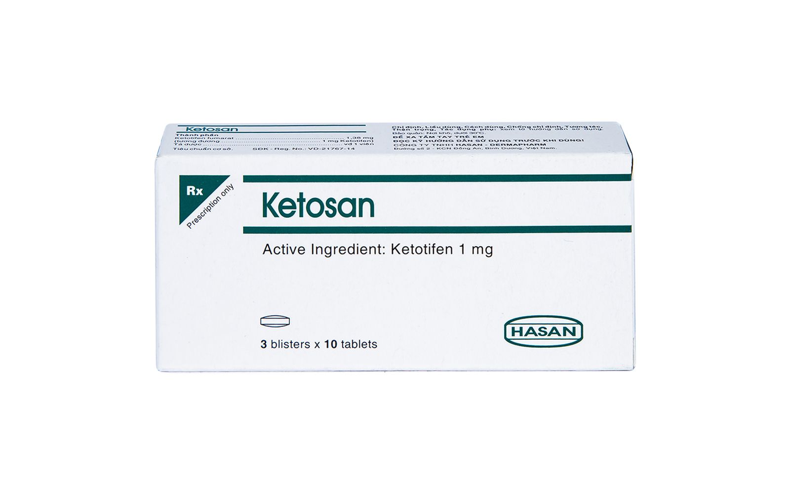 Thuốc Ketosan được bào chế dưới dạng viên nén. Hộp 03 vỉ x 10 viên nén. Hộp 10 vỉ x 10 viên nén.