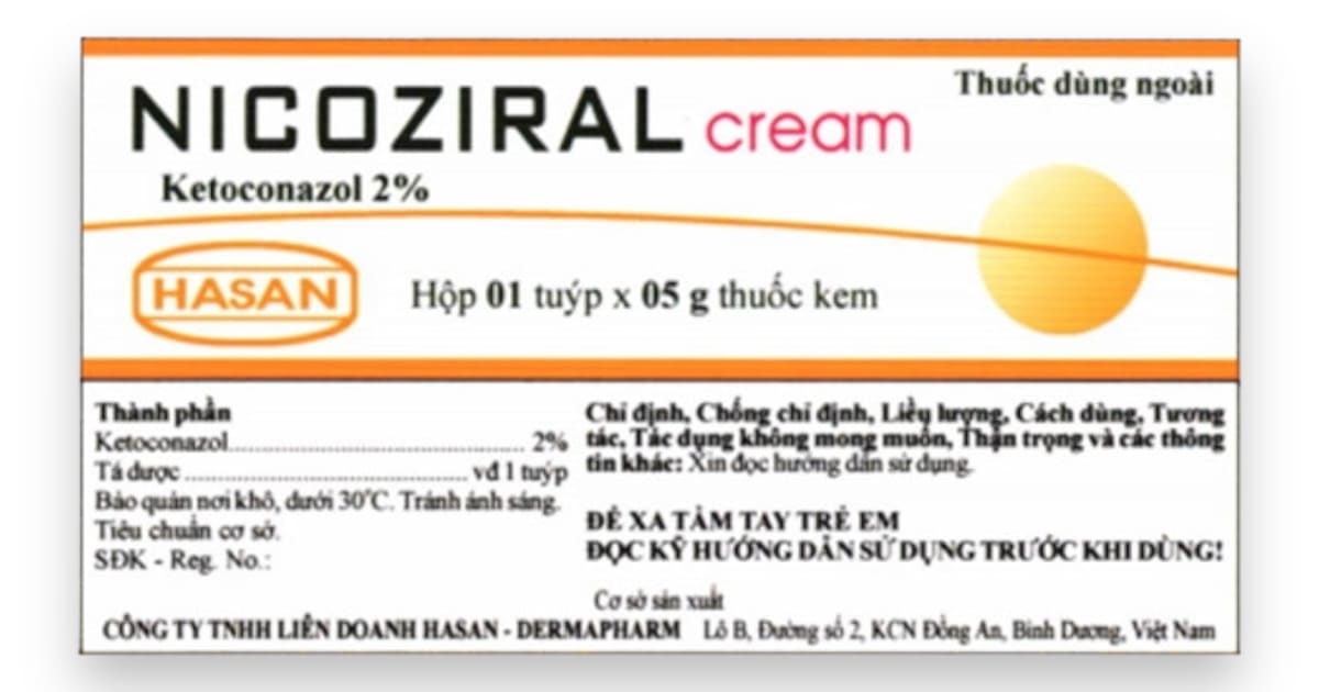 Chỉ định: Dùng ngoài da để điều trị các bệnh nấm da và niêm mạc như nấm da toàn thân, nấm ở đùi, bàn tay, bàn chân do Trichophyton spp.Microsporon spp. và Epidermophyton spp. Thuốc kem chứa Ketoconazol 2% còn được chỉ định điều trị nấm do Candida (bao gồm cả viêm âm đạo), nấm lang beng và viêm da bã nhờn do Malassezia (Pityrosporum) spp. Liều lượng – Cách dùng: Thuốc kem Nicoziral Cream chỉ dùng cho người lớn. Nấm da bàn chân: Trường hợp nhẹ: Dùng 2 lần/ngày trong thời gian 1 tuần. Trường hợp nặng hơn hay bệnh lây lan rộng (lòng bàn chân hay mép chân) cần điều trị thêm vài ngày sau khi các triệu chứng biến mất để tránh tái phát. Các trường hợp nhiễm nấm khác: Nicoziral Cream nên được thoa vào vùng da bệnh 1-2 lần/ngày tùy mức độ nghiêm trọng của bệnh. Việc điều trị nên được tiếp tục một vài ngày sau khi các triệu chứng biến mất. Thời gian điều trị thông thường là: lang ben 2 – 3 tuần, nấm da toàn thân 3-4 tuần. Việc chẩn đoán và điều trị cần được xem xét lại nếu sau 4 tuần điều trị các triệu chứng  lâm sàng không cải thiện. Các biện pháp liên quan đến vấn đề vệ sinh nên được đảm bảo để tránh lây nhiễm và tái phát bệnh. Viêm da bã nhờn thường kéo dài dai dẳng và hay tái phát. Trẻ em: Dữ liệu về việc sử dụng thuốc kem chứa ketoconazol 2% ở trẻ em còn giới hạn. Chống chỉ định: Quá mẫn với ketoconazol hoặc bất kỳ thành phần nào của thuốc.