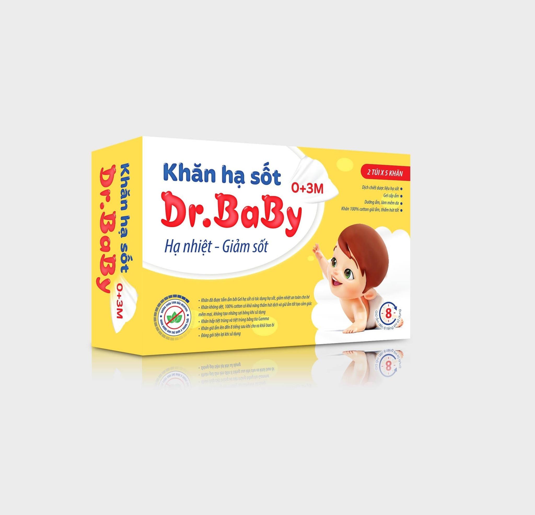 KHĂN HẠ SỐT DR.BABY 0-3M_H10 khăn Màu Vàng_K40 Mua 10 Lốc tặng 1 Hộp Tóc vỉ