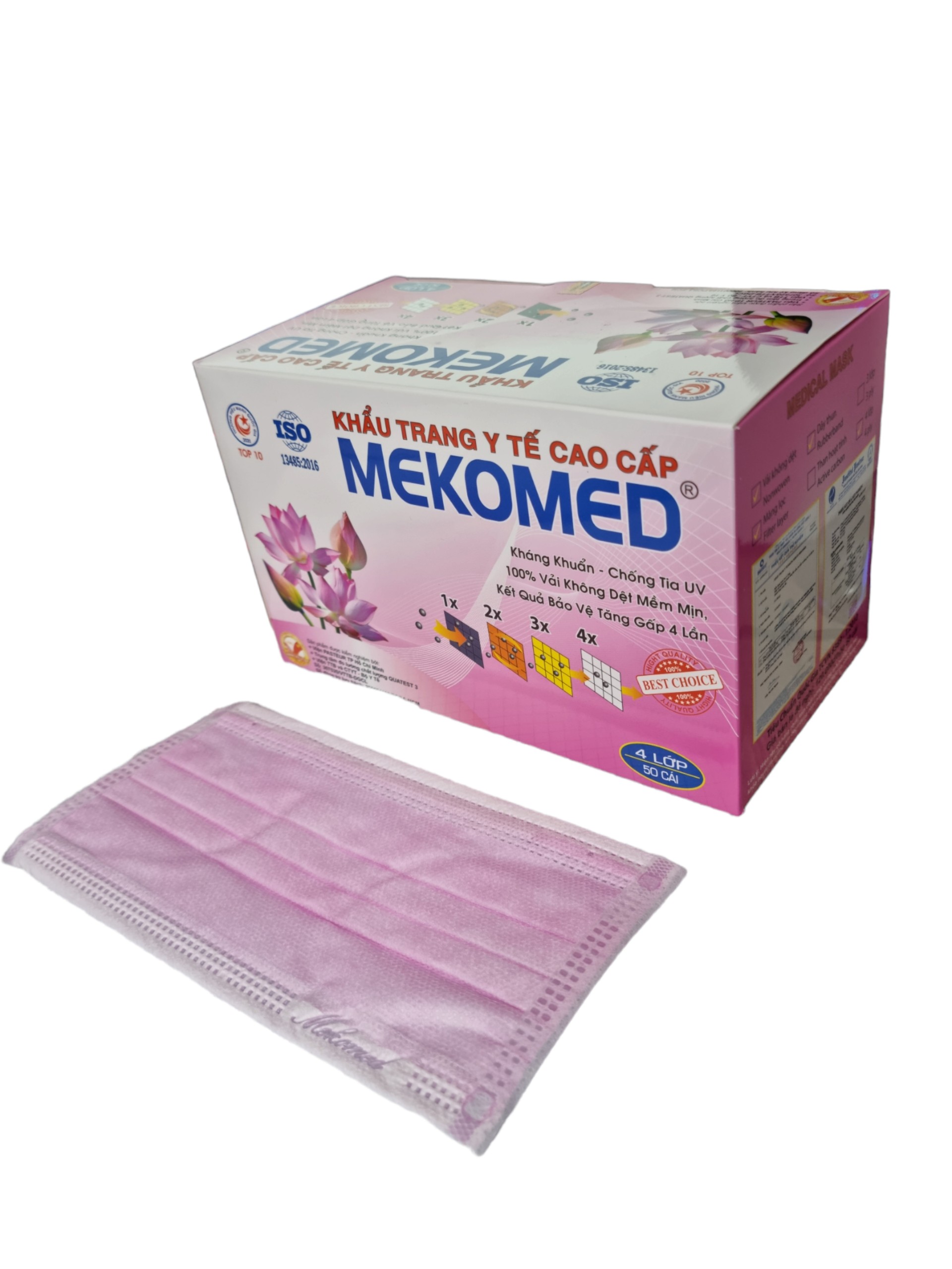 Khẩu trang Mekomed 4 lớp hồng H50C