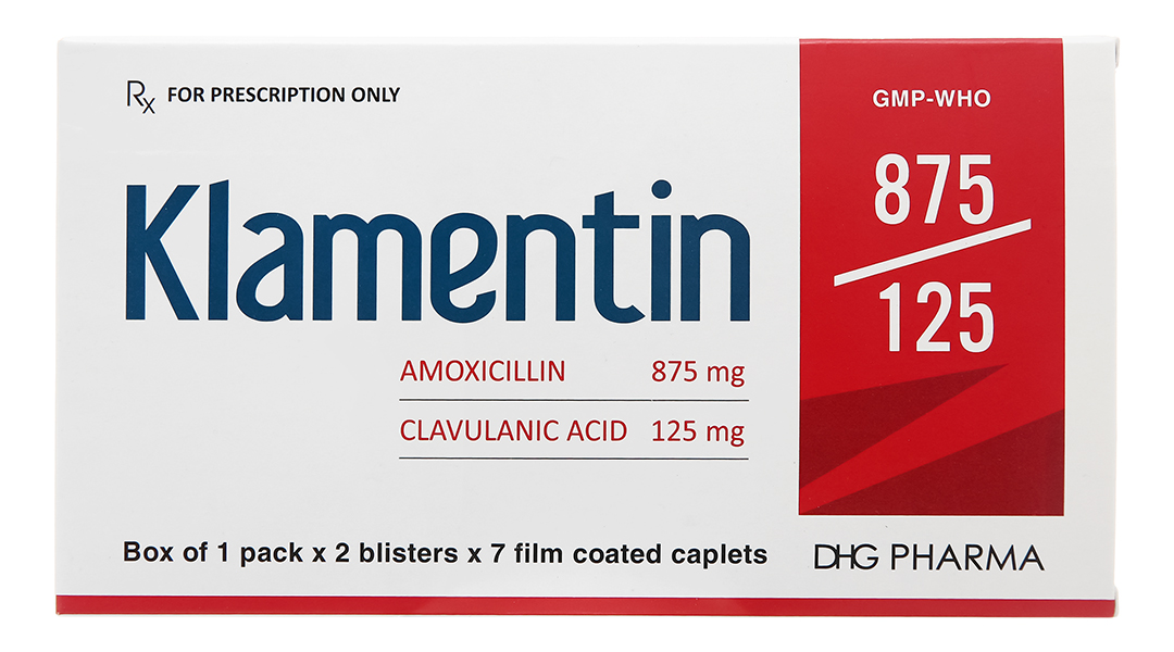 Hoạt chất: Amoxicilin (dưới dạng amoxicilin trihydrat) 875mg, Acid clavulanic (dưới dạng kali clavulanat) 125mg