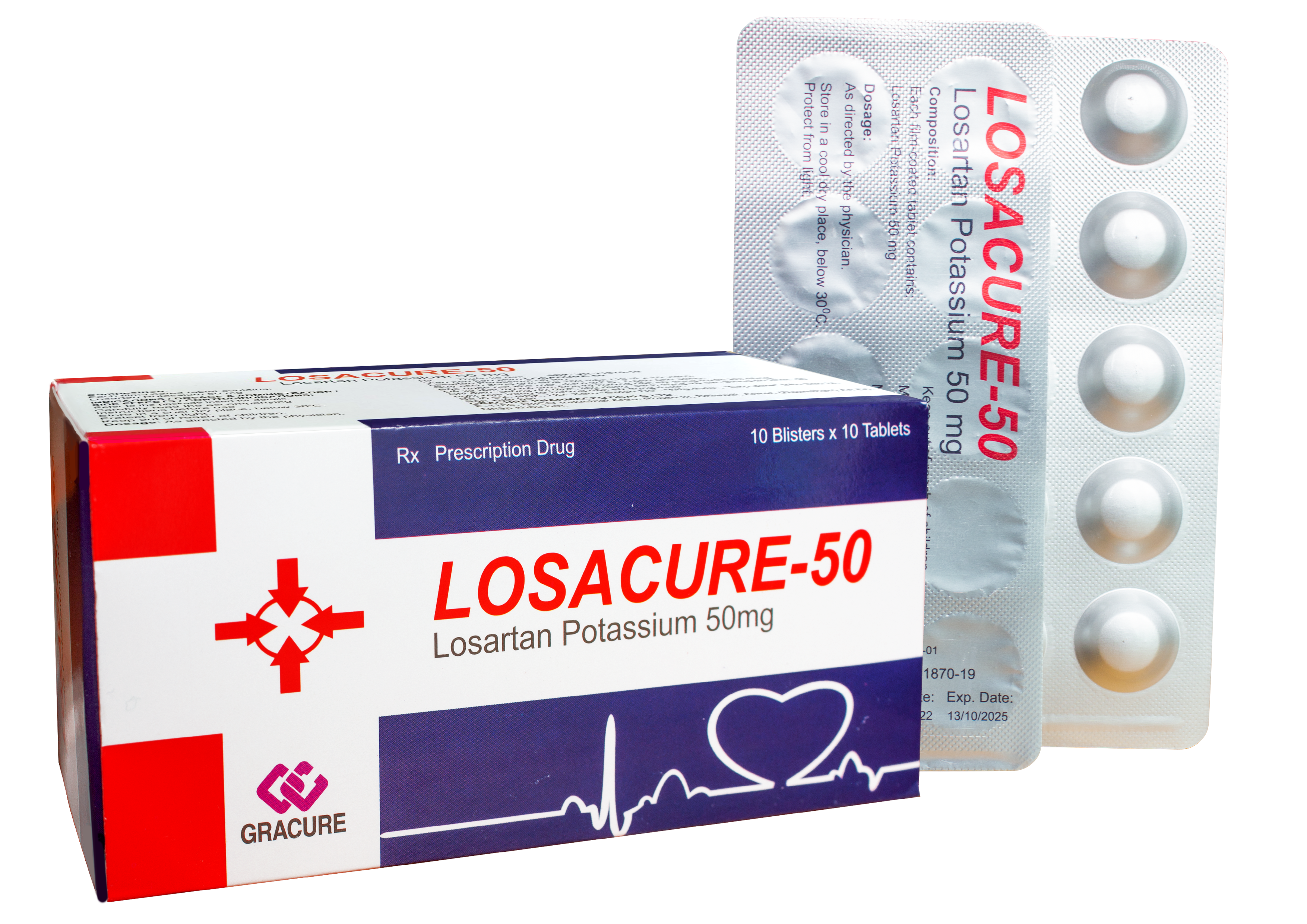 Losacure-50 là thuốc có xuất xứ từ Ấn Độ và có công dụng trong điều trị cao huyết áp và đái tháo đường typ 2 với protein niệu ≥ 0,5 g mỗi ngày. Đồng thời, thuốc còn hỗ trợ các bệnh nhân là người lớn gặp các tình trạng tăng huyết áp với phì đại thất trái. Thuốc có chứa hoạt chất chính là losartan – thành phần chống tăng huyết áp mới và đối kháng thụ thể (týp AT1) angiotensin II.