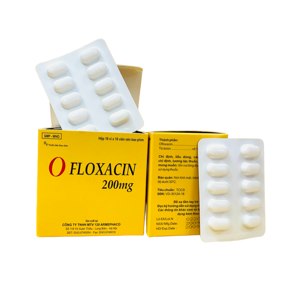 Ofloxacin 200mg Hộp 10 vỉ x 10 viên nén bao phim – Dược 120