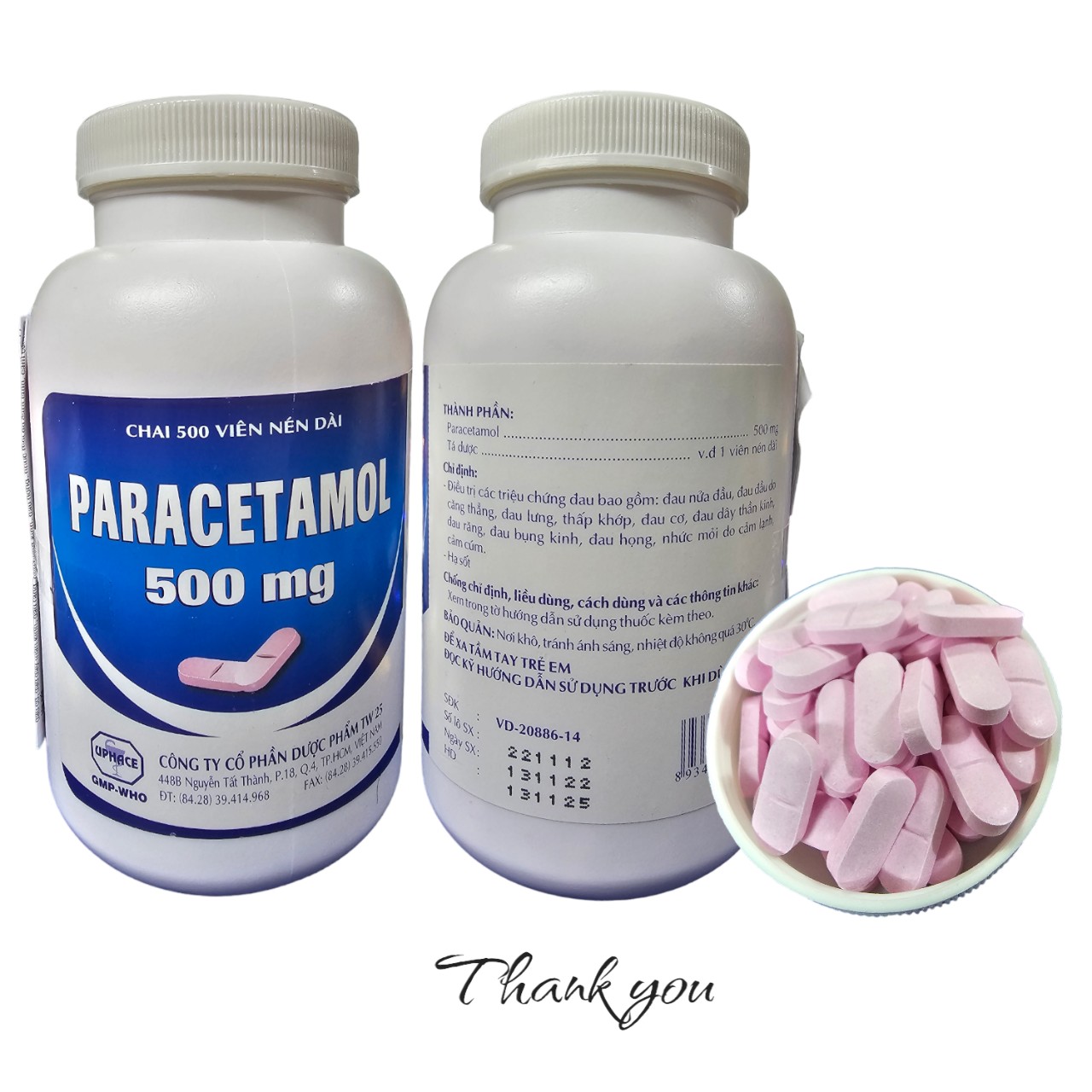 PARACETAMOL 500MG- TW25- CHAI 500 VIÊN NÉN HỒNG