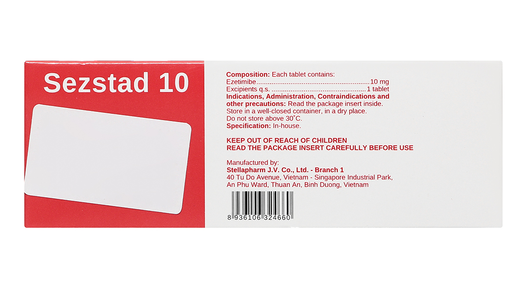 Thành phần hoạt chất: Ezetimibe 10mg.