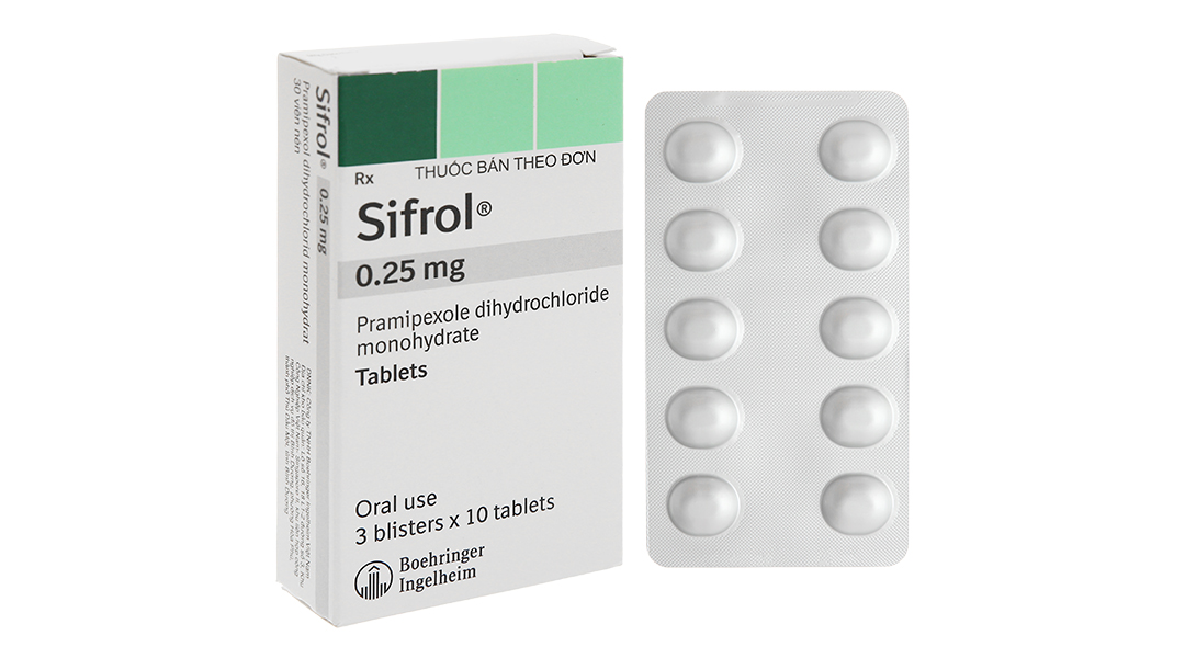 - SIFROL được chỉ định điều trị các dấu hiệu và triệu chứng của bệnh Parkinson vô căn, thuốc có thể dùng đơn trị liệu (không cùng levodopa) hoặc kết hợp với levodopa, nghĩa là có thể dùng trong suốt đợt điều trị, cho đến cả giai đoạn muộn khi levodopa mất dần tác dụng (wear off) hay trở nên không ổn định và xuất hiện sự dao động trong hiệu quả điều trị (cuối liều hay dao động bật tắt (on off)).