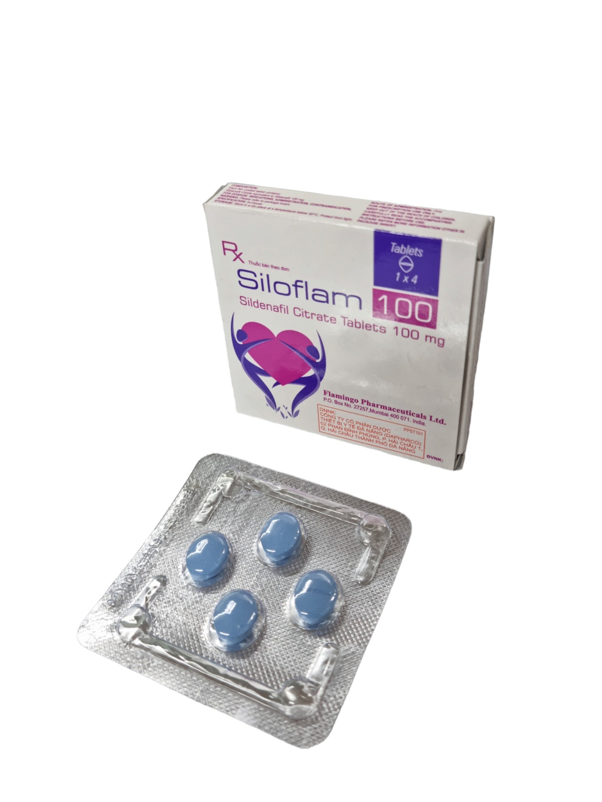 Trong 1 viên nén Siloflam 100 có chứa Sildenafil citrate tương đương Sildenafil 100mg tá dược vừa đủ viên nén.