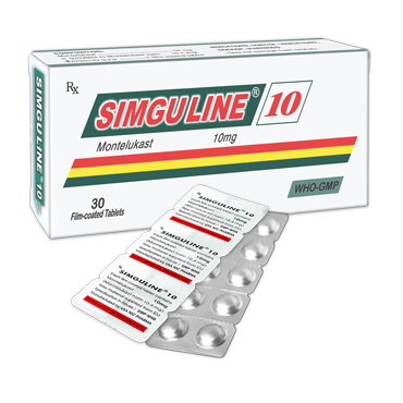 • SIMGULINE được chỉ định cho người lớn tuổi và trẻ em trên 6 năm tuổi để dự phòng và điều trị hen phế quản mãn tính, bao gồm dự phòng cả các triệu chứng hen ban ngày và ban đêm, điều trị bệnh nhân hen nhạy cảm với Aspirin và dự phòng cơn thắt phế quản do gắng sức, làm giảm các triệu chứng ban ngày và ban đêm của viêm mũi dị ứng (viêm mũi dị ứng theo mùa cho người lớn và trẻ em từ 6 năm tuổi trở lên, và viêm mũi dị ứng quanh năm cho người lớn và trẻ em từ 6 năm tuổi trở lên).