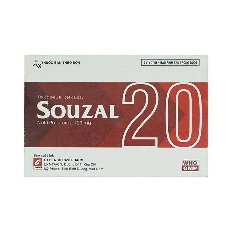 Souzal là thuộc nhóm thuốc đường tiêu hóa, có thành phần Rabeprazole sodium và được đóng gói dưới dạng viên bao phim tan trong ruột. Thuốc sản xuất bởi Công ty CP Dược phẩm Đạt Vi Phú