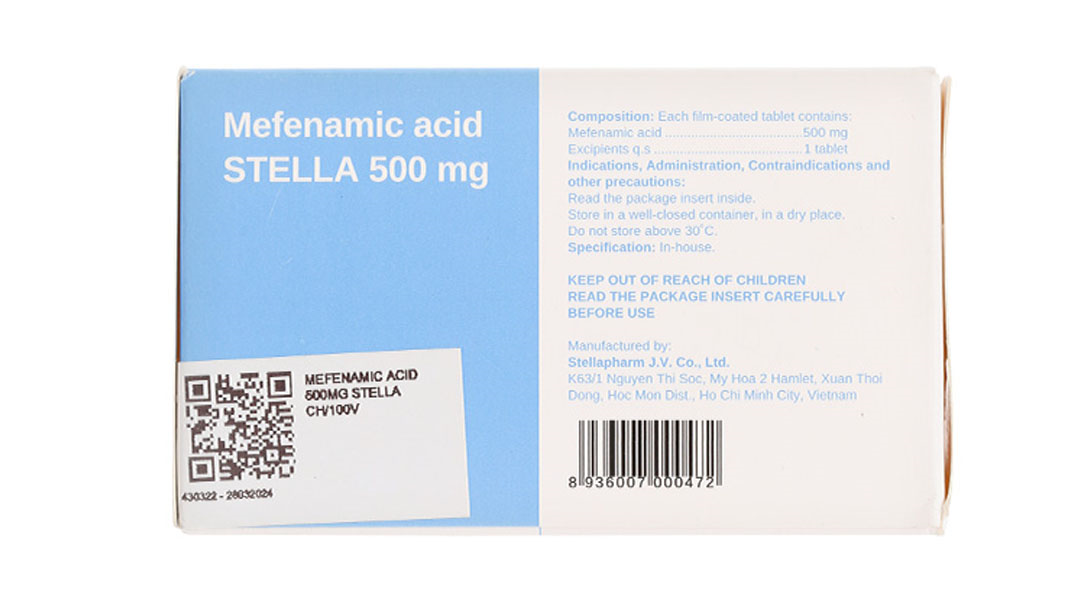 MEFENAMIC ACID 500MG – STELLA- CHAI 100 VIÊN