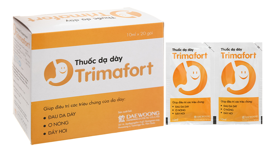 – Trimafort là công thức chứa thuốc kháng acid dịch vị và simethicon . Nhôm hydroxyd là thuốc kháng acid tác động chậm, trong khi magnesi hydroxyd là thuốc kháng acid tác động nhanh. – Muối magnesi kháng acid còn có tác dụng nhuận tràng nên thường được phối hợp với muối nhôm kháng acid để giảm tác dụng gây táo bón của muối nhôm. – Simethicon là chất phá bọt, phá vỡ các bóng hơi trong dạ dày, giúp hơi dễ thoát ra ngoài, giảm đầy bụng, khó chịu ở dạ dày.