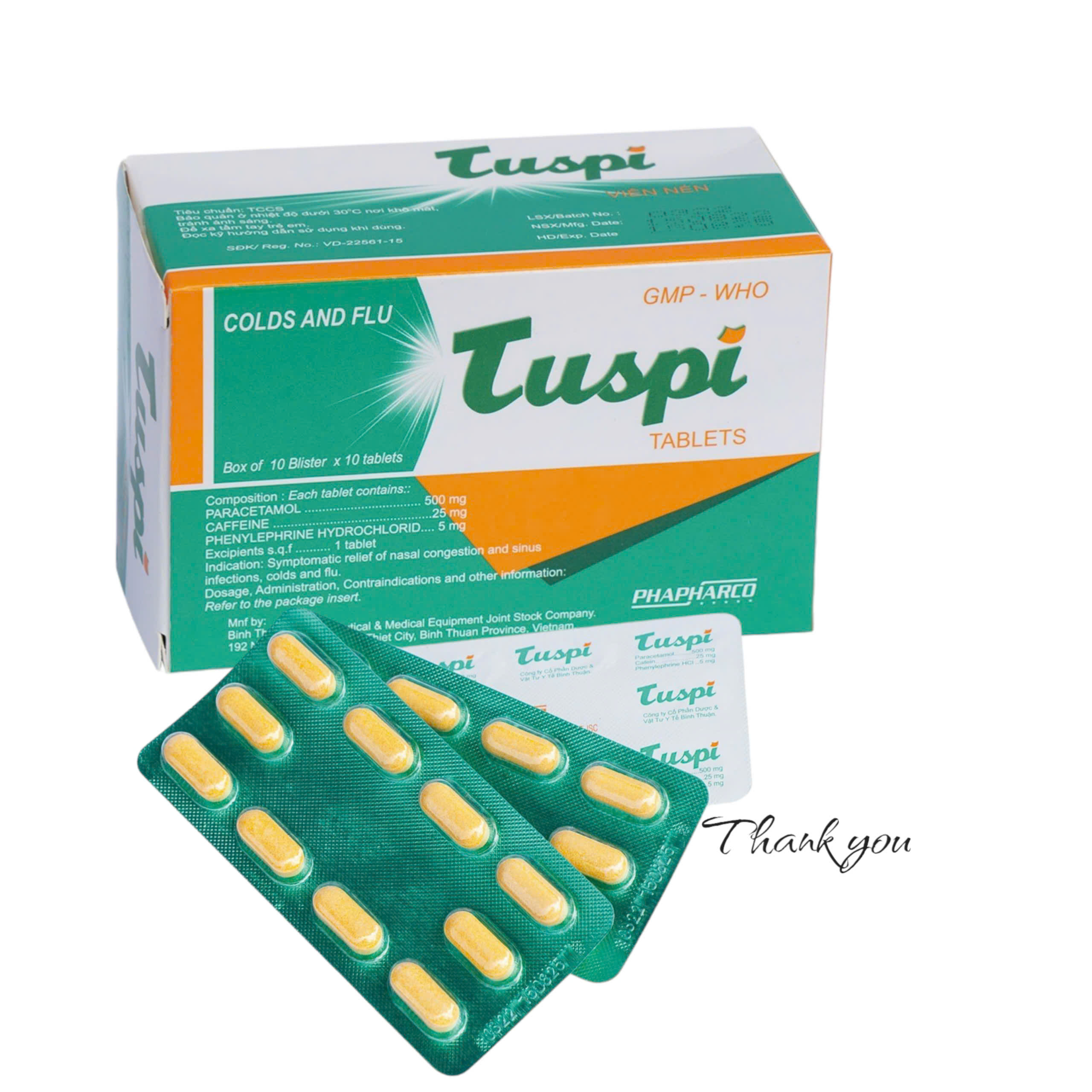 TUSPI 500MG COLD AND FLU XANH- BÌNH THUẬN- 10 VỈ X 10 VIÊN