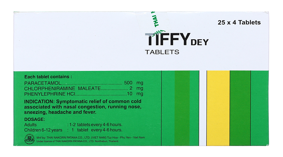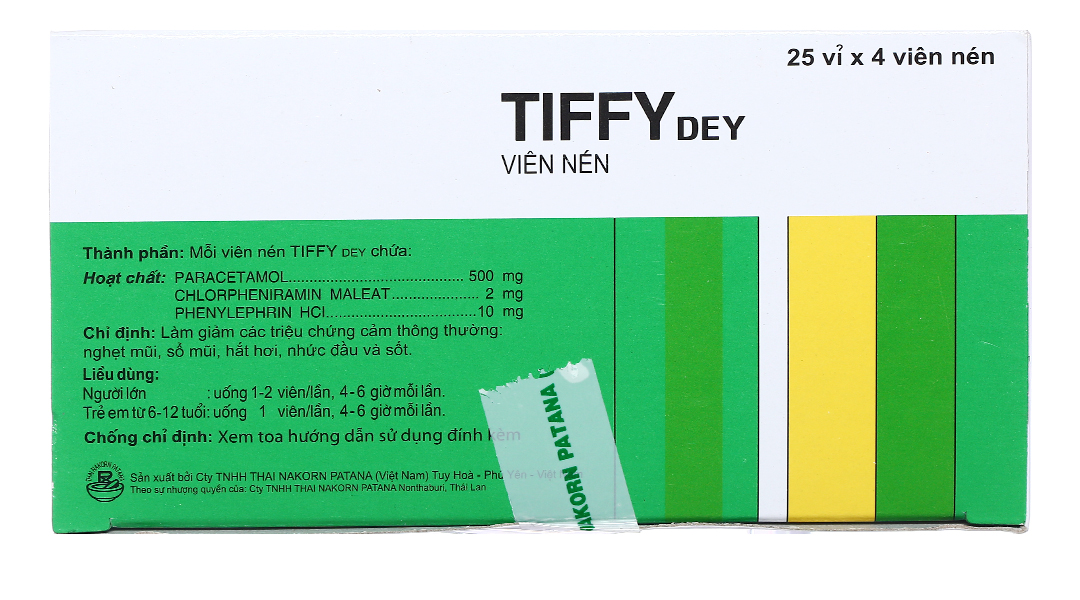 Hoạt chất: Paracetamol 500mg, Chlorpheniramin maleat 2mg, Phenylephrin HCl 10mg.