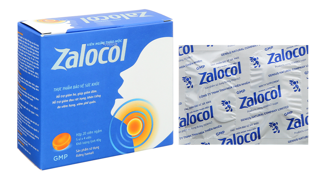 Kẹo ngậm Zalocol hỗ trợ giảm ho, giúp giảm đờm, giảm đau rát họng, khản tiếng do viêm họng, viêm phế quản.
